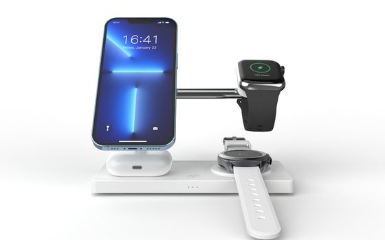 The All In One Wireless Charger comes in a sleek and compact box that includes: